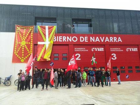 LAB ha desplegado una ikurriña y una bandera navarra en el Parque de Bomberos de Trinitarios en solidaridad con los dos bomberos imputados en el caso de los "Pescadores Barbudos". El portavoz de LAB Igor Arroyo ha realizado declaraciones a los medios de comunicación acompañado de Iñigo Balbas y Natxo Barriuso, dos de los seis imputados.