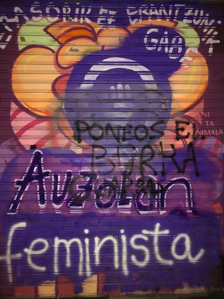 Digo todo esto porque la ultraderecha de este país no tiene un grupo paramilitar como el Amanecer Dorado griego, pero ni es nueva ni está sola. Y cuando su discurso empieza a calar y a tener éxito, salen los fascistas que ya estaban ahí, debajo de las piedras de los aparatos del Estado y de las organizaciones. En los cuerpos militares o policiales o en la judicatura. También hay ultraderechistas escondidos en partidos que se dicen más moderados. ¿Recordáis a la marquesa de los populares rodeada de polis alfa con el gesto altivo frente a los independentistas? ¿O a la de ciudadanos en plan macarra en la mani del orgullo? Pues eso. También salen de otros sitios, de partidos falangistas neonazis sin representación, pero a los que se permite presentarse a elecciones. Y en el último eslabón de la cadena están los juligans a pie de calle, que lo mismo agreden a alguien que hacen unas pintadas. Estos niveles de la cadena a veces se cruzan. Te puede firmar el garito con esprai un juligan que pertenece a un partido nazi y apoya al de los 52 escaños. A Pikara Magazine, como a otras organizaciones antirracistas, de izquierdas, antifascistas, etc., nos ha tocado esta última modalidad. Después de varias pintadas firmadas por un partido falangista diciendo que la violencia no tiene género, llamándonos putas de Soros, etcétera, las últimas han sido durante estas fiestas. En la festividad cristiana por excelencia, las consignas elegidas fueron ‘Alá es grande’, ‘Stop feminismo’ y el imperativo ‘Poneos el Burka’. En la novela de Houllebeq, Sumisión, la izquierda acaba abrazando el Islam, especialmente los hombres, que terminan viendo la posibilidad de la poligamia como una ventaja. ¿Serán estas pintadas un ejemplo más de que el apocalipsis va a llegar? ¿Están los buenos cristianos a punto de abrazar la religión rival con tal de que el feminismo cese? ¿O nos están advirtiendo de que, nosotras, malditas progres, defendemos otras culturas que llegarán y nos taparán la boca y la cabeza, por listas, a pesar de que, de momento, sean solo ellos los que nos amenazan?